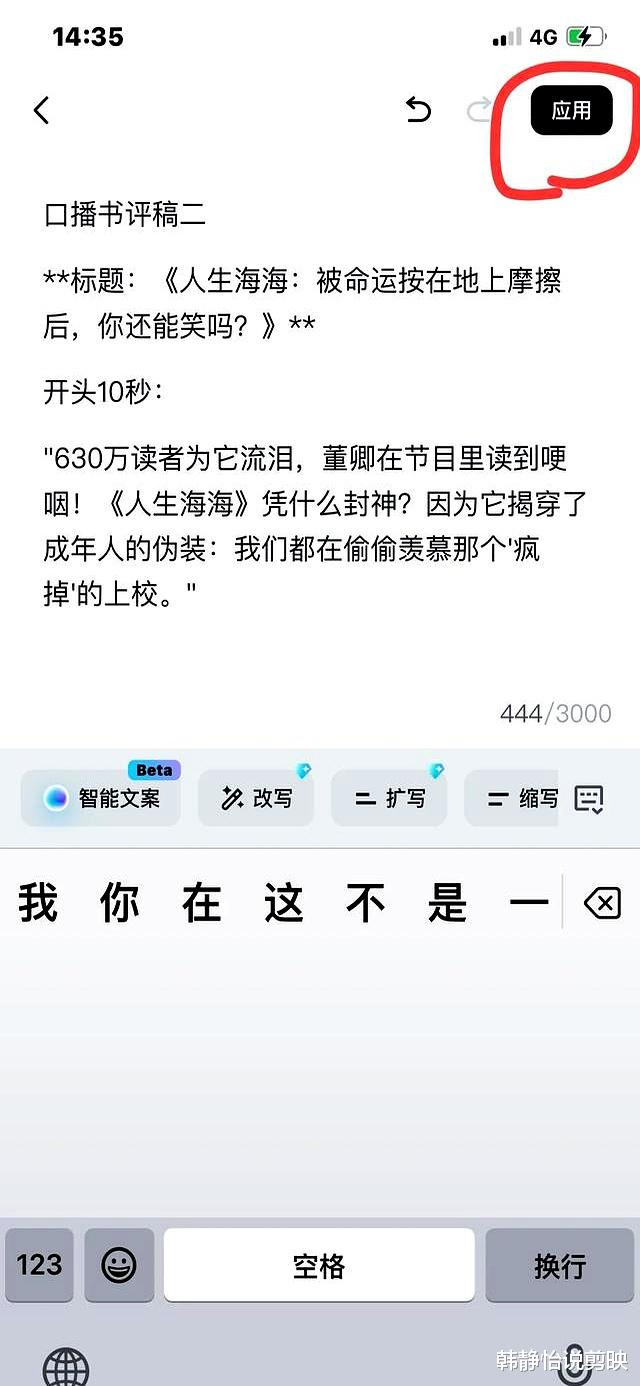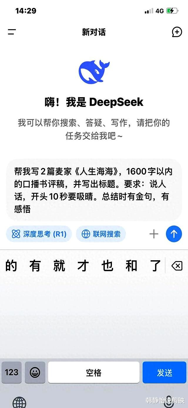 我发现,Deepseek最强大的地方在于它的文案生成能力。只需要输入简单的指令,它就能快速生成高质量的视频文案。这对于我这个写作爱好者来说,简直是如虎添翼。我试着用它来写书评,写生活感悟,写职场经验,每一次都能给我带来惊喜。