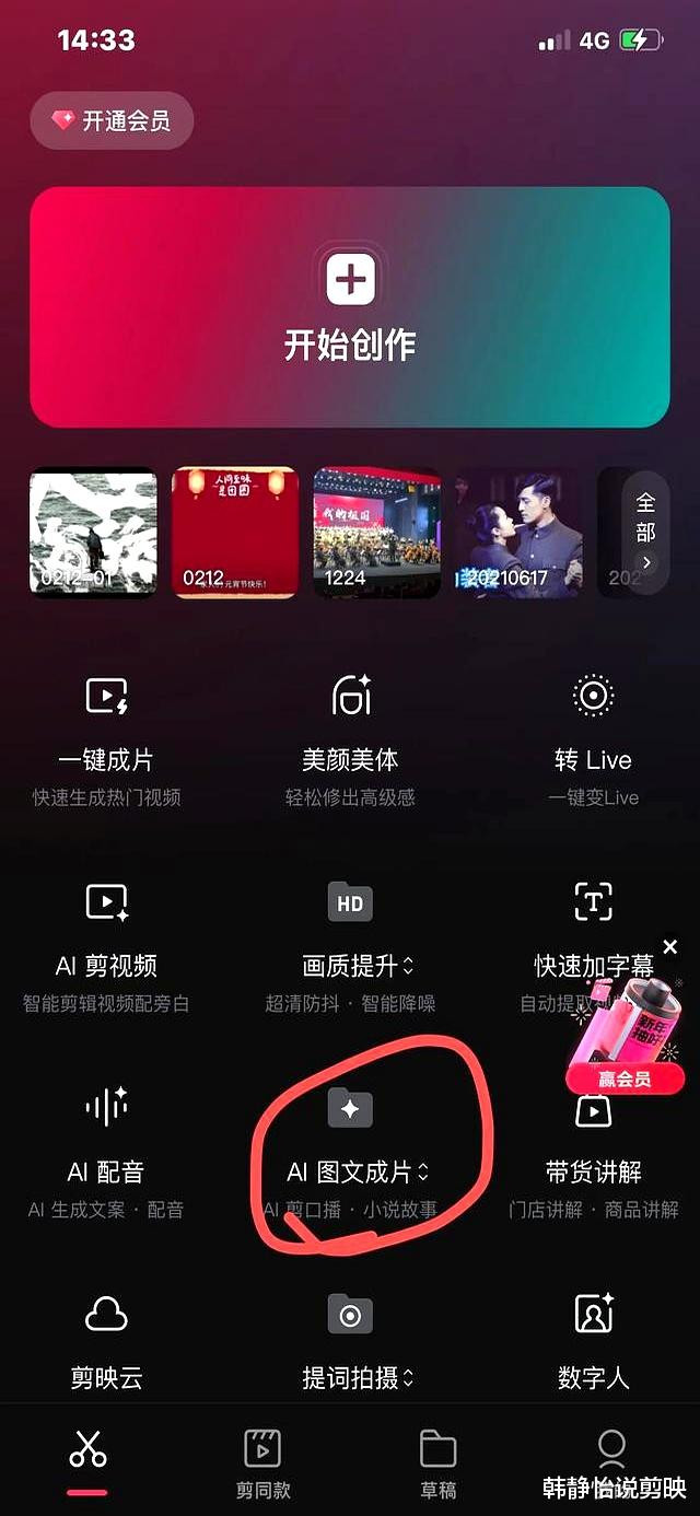 有了文案,接下来就是剪辑了。剪映是一款非常友好的视频剪辑软件,即使是零基础的小白也能轻松上手。我按照教程一步步地操作,选择“AI图文成片”功能,将Deepseek生成的文案粘贴进去,点击“智能匹配素材”。